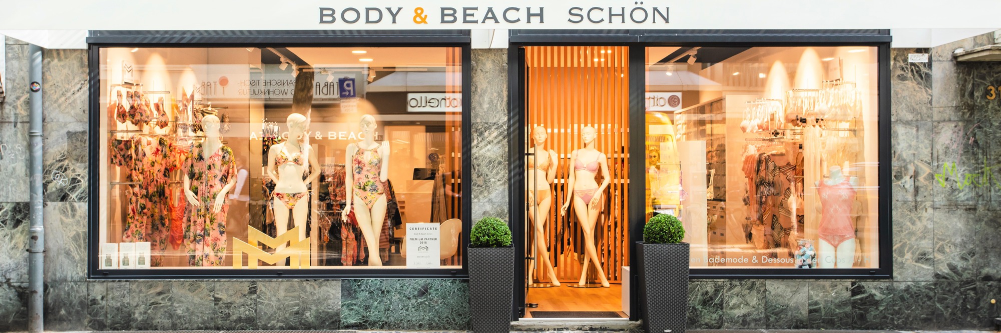 In den modernen Räumlichkeiten der Body & Beach-Filialen werden Sie von einem engagierten Team mit hoher Kompetenz, Know-how und Trendgespür hervorragend beraten.
